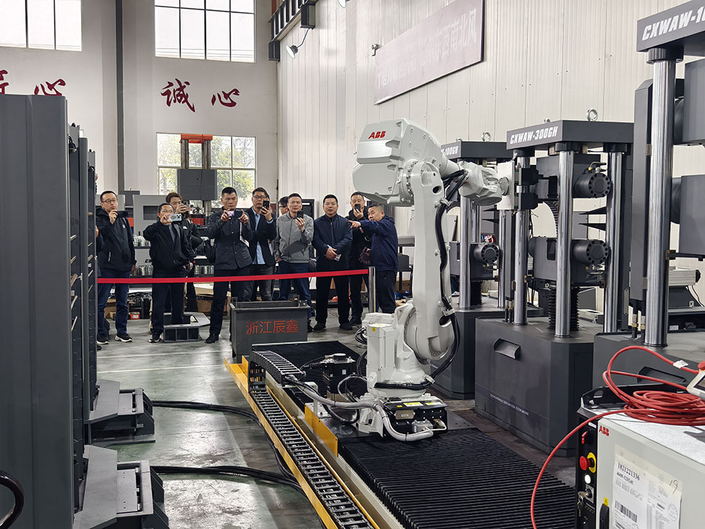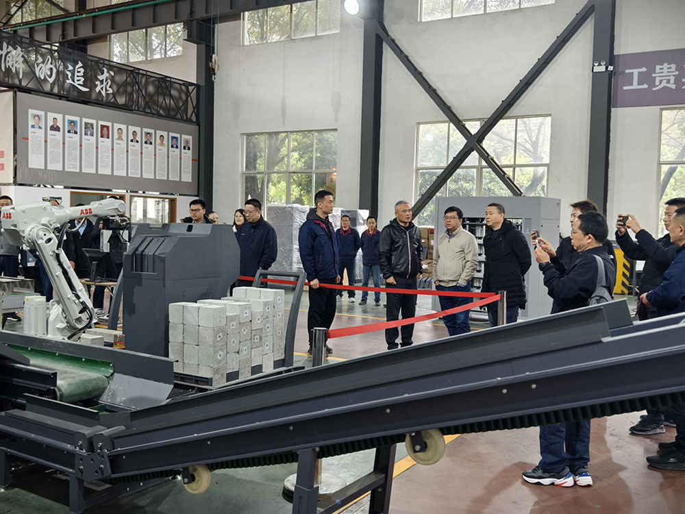 Next, Secretary He and his team visited key areas such as our product showroom and production workshop, and watched the operation demonstration of the intelligent manipulator on site. The intelligent, unmanned, automation and other advanced performance of the equipment aroused the strong interest of the guests. Under the explanation of the chairman, Ruan Weixin, the guests raised many questions of interest, and the chairman gave a detailed answer.