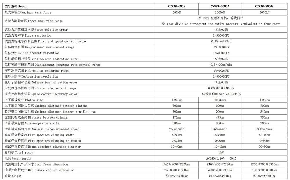 10. The automatic control system adopts computer and electro-hydraulic servo system for control loading and full automatic control.