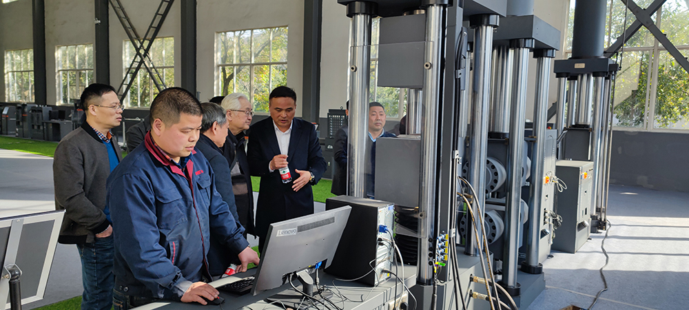 专家组一行先来到生产车间,实地参观考察我公司的生产设备和技术工艺,对车间干净明亮的环境和严格的品控管理予以赞扬。紧接着来到公司产品展厅,董事长向专家详细介绍了产品主要性能及先进的技术创新,品控部长张丽胜现场演示热轧带肋钢筋拉伸试验,设备的优良性能令专家组啧啧称赞。