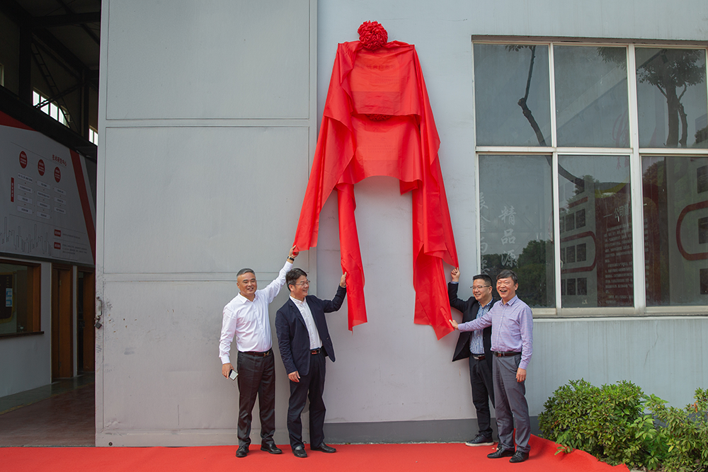 会后,董事长阮伟鑫、道墟街道戴忠伟书记、绍兴文理学院陈文平书记、绍兴市机械电子工业联合会王文奎副会长共同为产学研合作基地/技术研发中心揭牌,见证这历史性的一刻。