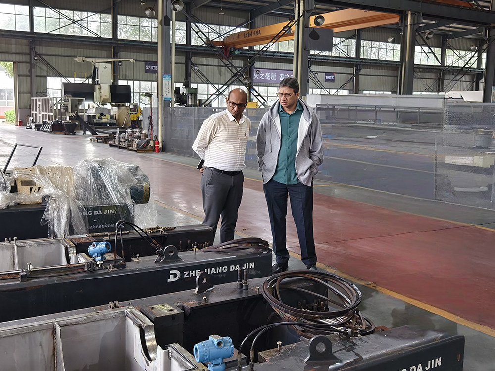 11月18日,来自印度的客户不远万里来到我司进行实地深入考察,董事长阮伟鑫和销售副总李建明亲自接待陪同。在参观过程中,印度客户表现出了极大的兴趣和认真态度,他们仔细参观了我司的车间和展示厅,详细了解了产品的生产流程、技术工艺等核心技术问题。