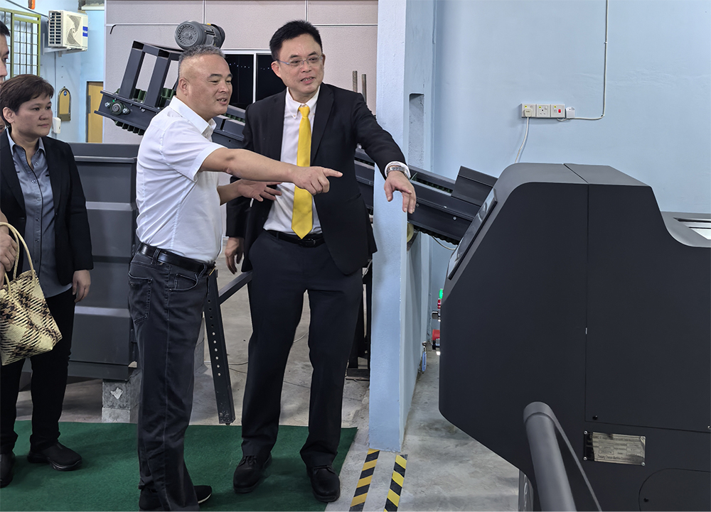仪式现场阮伟鑫董事长砂拉越州政府领导详细讲解了这套由我公司自主研发制造的智能混凝土试验装备的先进技术及操作流程,并通过现场演示,更加直观生动地展示了该装备的智能化、信息化、自动化、无人化。砂拉越州政府领导高度评价此次活动,称其为"马中科技合作的新典范"。