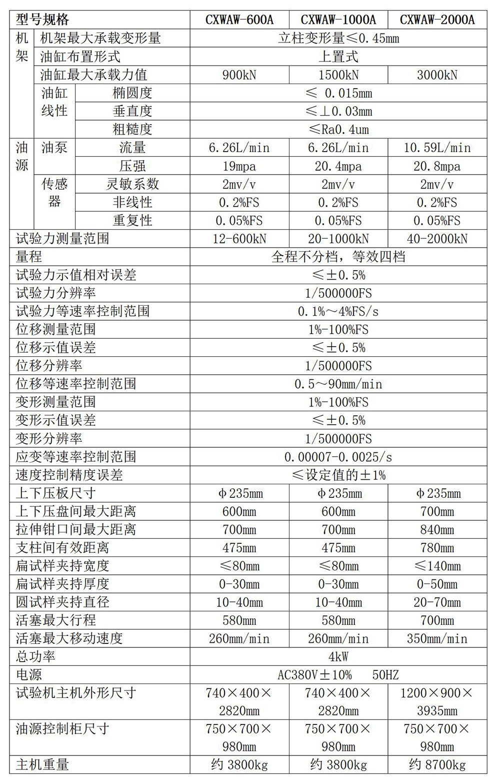 CXWAW-A系列微机控制电液伺服万能材料试验机