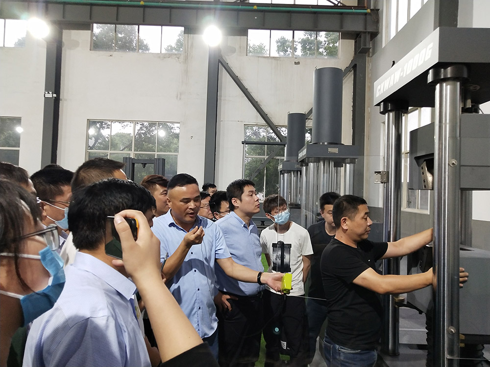 Accompanied by the chairman, general manager and R & D director of the company, the experts visited our product exhibition hall and showed strong interest in the related equipment. During this period, Ruan Weixin, chairman of the board of directors, introduced the main performance and advanced technological innovation of the products in detail to the experts. Xu Feng, director of R & D, demonstrated the tensile test of hot rolled ribbed bars on the spot, and the excellent performance of the equipment made the customers admire.
