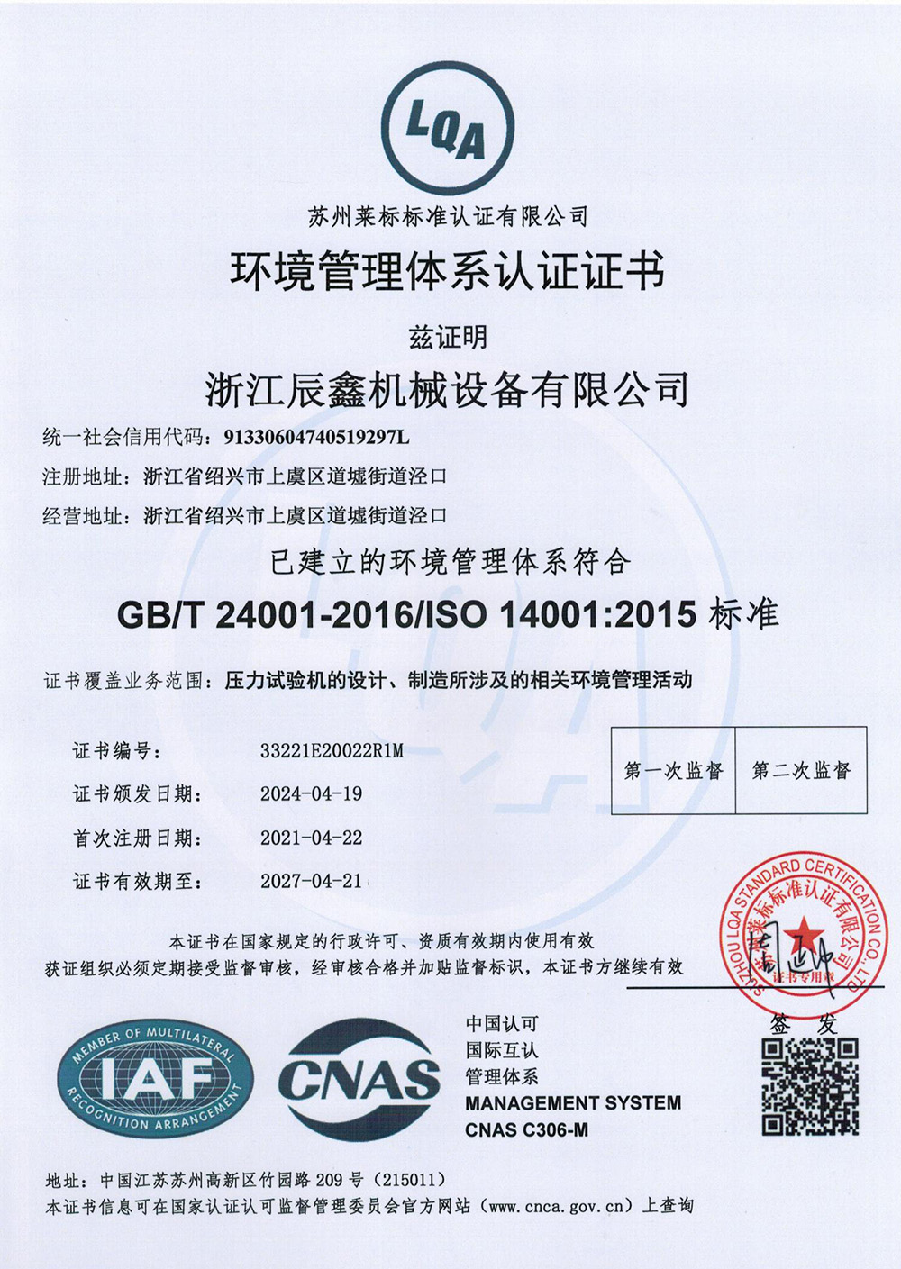 环境管理体系证书