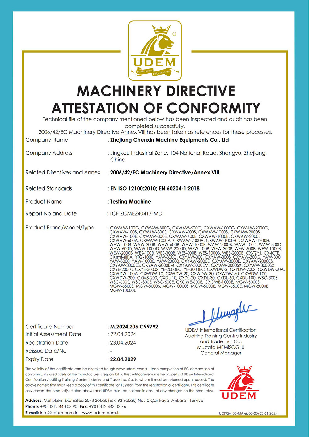 UDEM证书