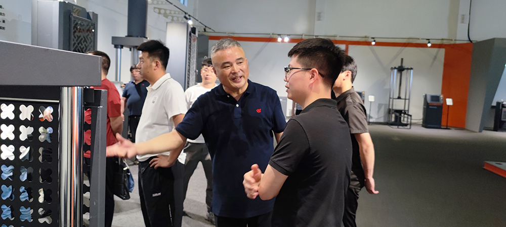 除了课堂知识,学员们在董事长阮伟鑫的带领下实地参观了我公司厂区、产品展示厅,充分了解了试验机的生产过程与零部件制造工序。参观过程中,学员们对我公司新研发的一体化智能砼试验成套装备、智能钢筋重量偏差标距仪等智能化设备非常感兴趣,通过现场演示和讲解,对我公司研发实力、技术力量给予了充分的肯定和赞扬。